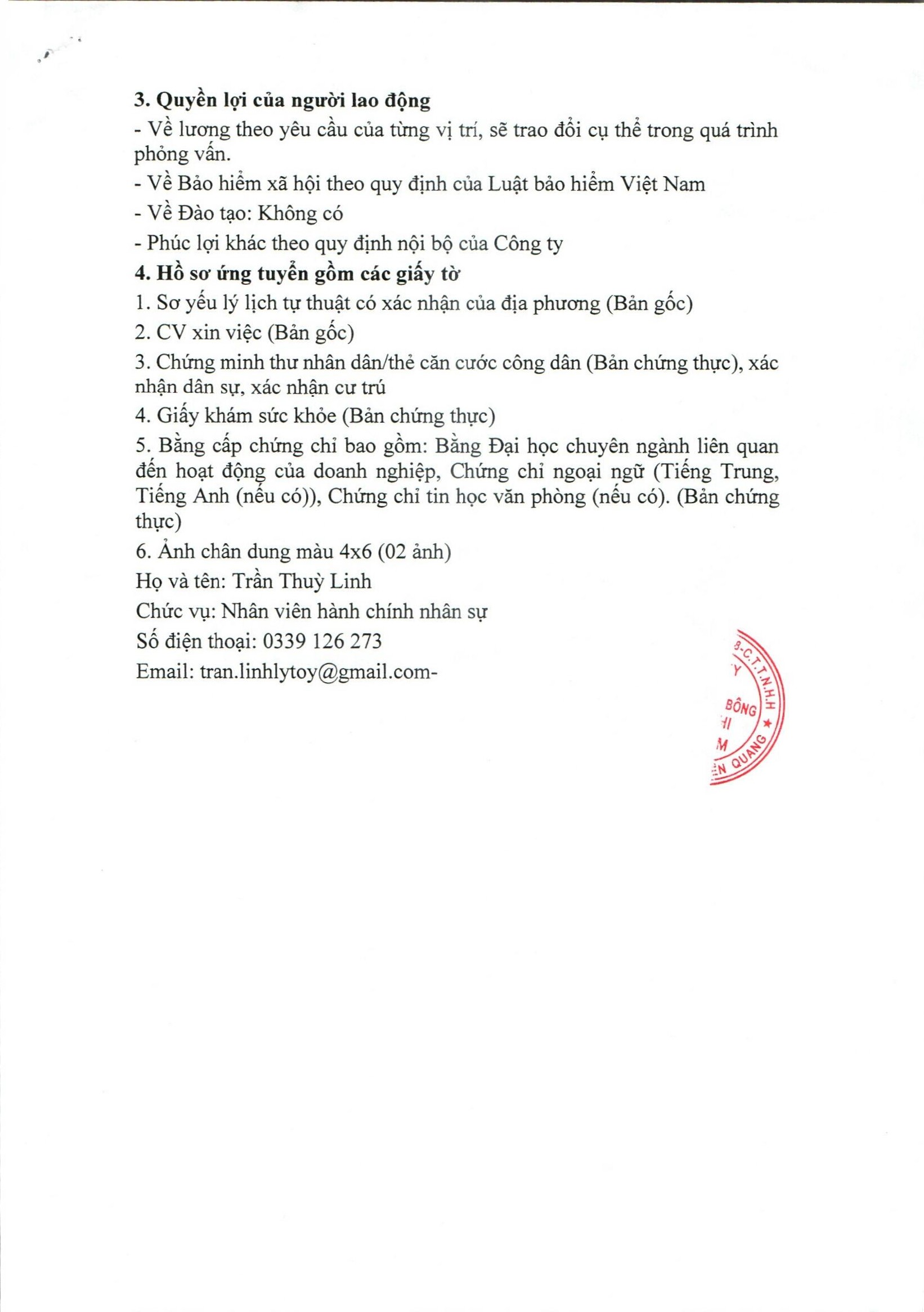 Thông báo tuyển dụng lao động Việt Nam vào các vị trí công việc dự kiến sử dụng lao động nước ngoài của Công ty TNHH đồ chơi thú bông lạc nghi 06 tháng 03 năm 2025