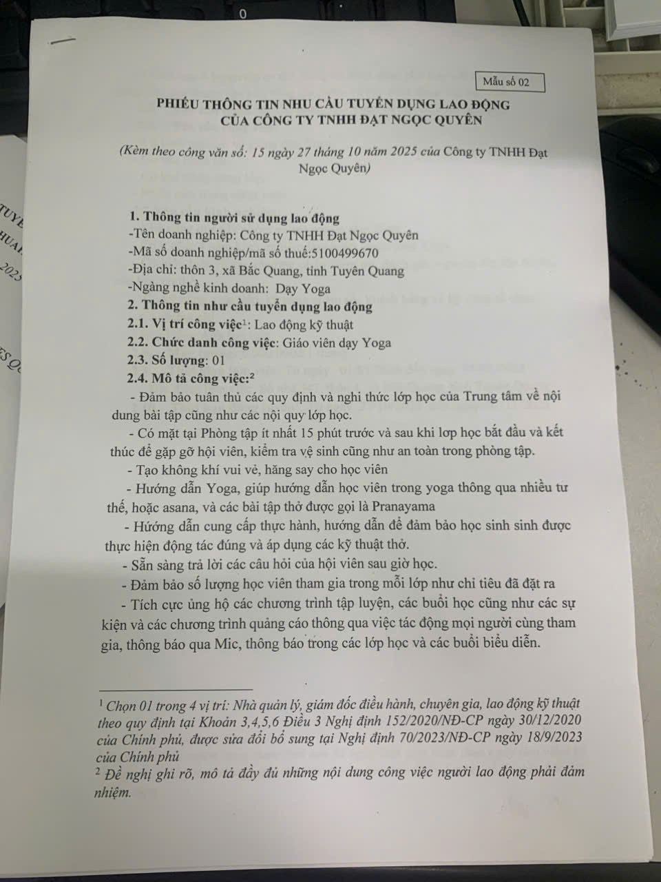 THÔNG BÁO NHU CẦU TUYỂN DỤNG LAO ĐỘNG CỦA CÔNG TY TNHH ĐẠT NGỌC QUYỀN