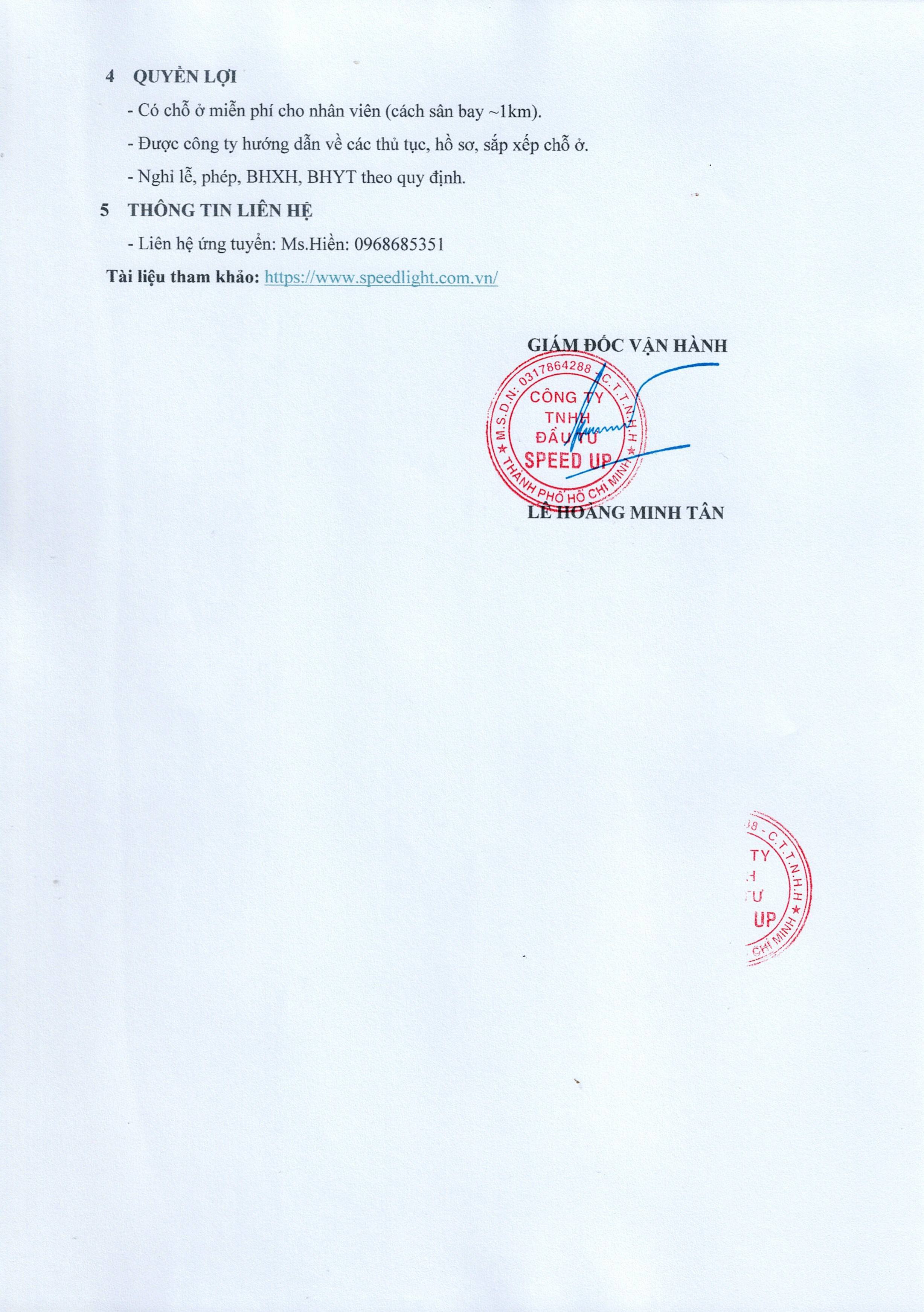 CÔNG TY TNHH SPEED UP LOGISTICS THÔNG BÁO TUYỂN DỤNG LAO ĐỘNG LÀM VIỆC TẠI SÂN BAY