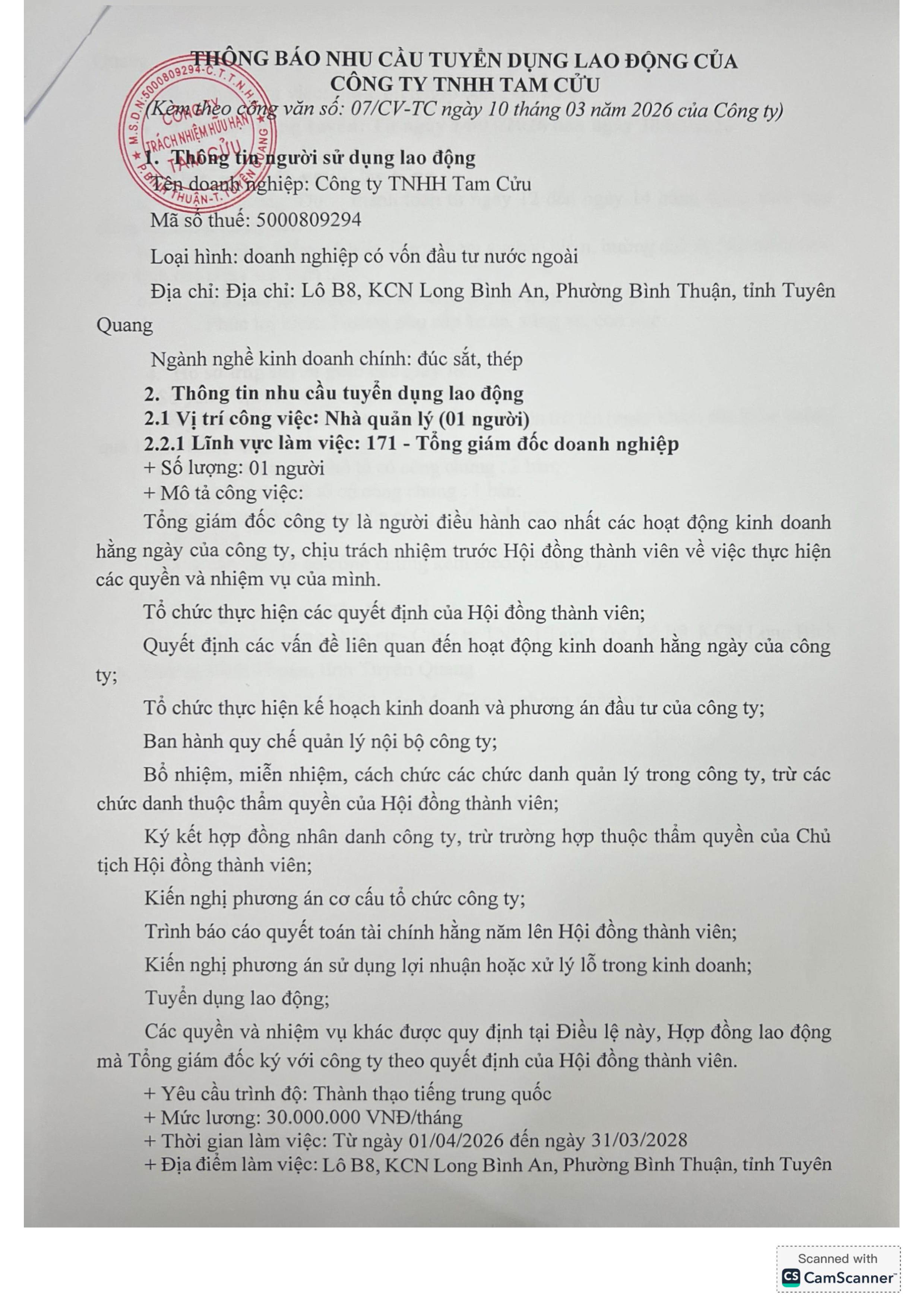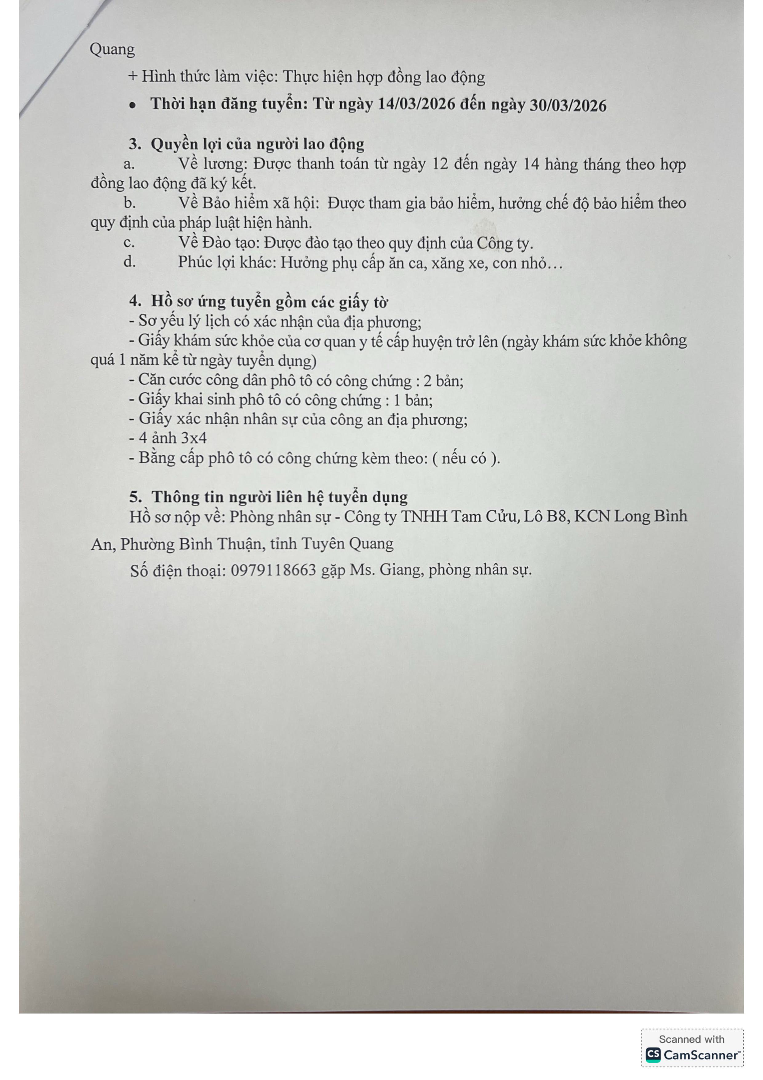 Ứng viên có nhu cầu vui lòng liên hệ: Trung tâm chính tại Tổ dân phố Hưng Thành 3, phường An Tường, tỉnh Tuyên Quang, số điện thoại 0968.537.388. Trụ sở 2 tại số nhà 224, tổ 13, phường Hà Giang 1, tỉnh Tuyên Quang, số điện thoại 02193.829.688. Văn phòng Chiêm Hóa tại thôn Vĩnh Khanh, xã Chiêm Hóa, tỉnh Tuyên Quang, số điện thoại 02073.851.699. Văn phòng Sơn Dương tại thôn Quyết Thắng, xã Sơn Dương, tỉnh Tuyên Quang, số điện thoại 02073.835.688. Văn phòng Bắc Quang tại thôn 9, xã Bắc Quang, tỉnh Tuyên Quang, số điện thoại 02193.822.386. Văn phòng Yên Minh tại tổ 1, xã Yên Minh, tỉnh Tuyên Quang, số điện thoại 02193.860.385