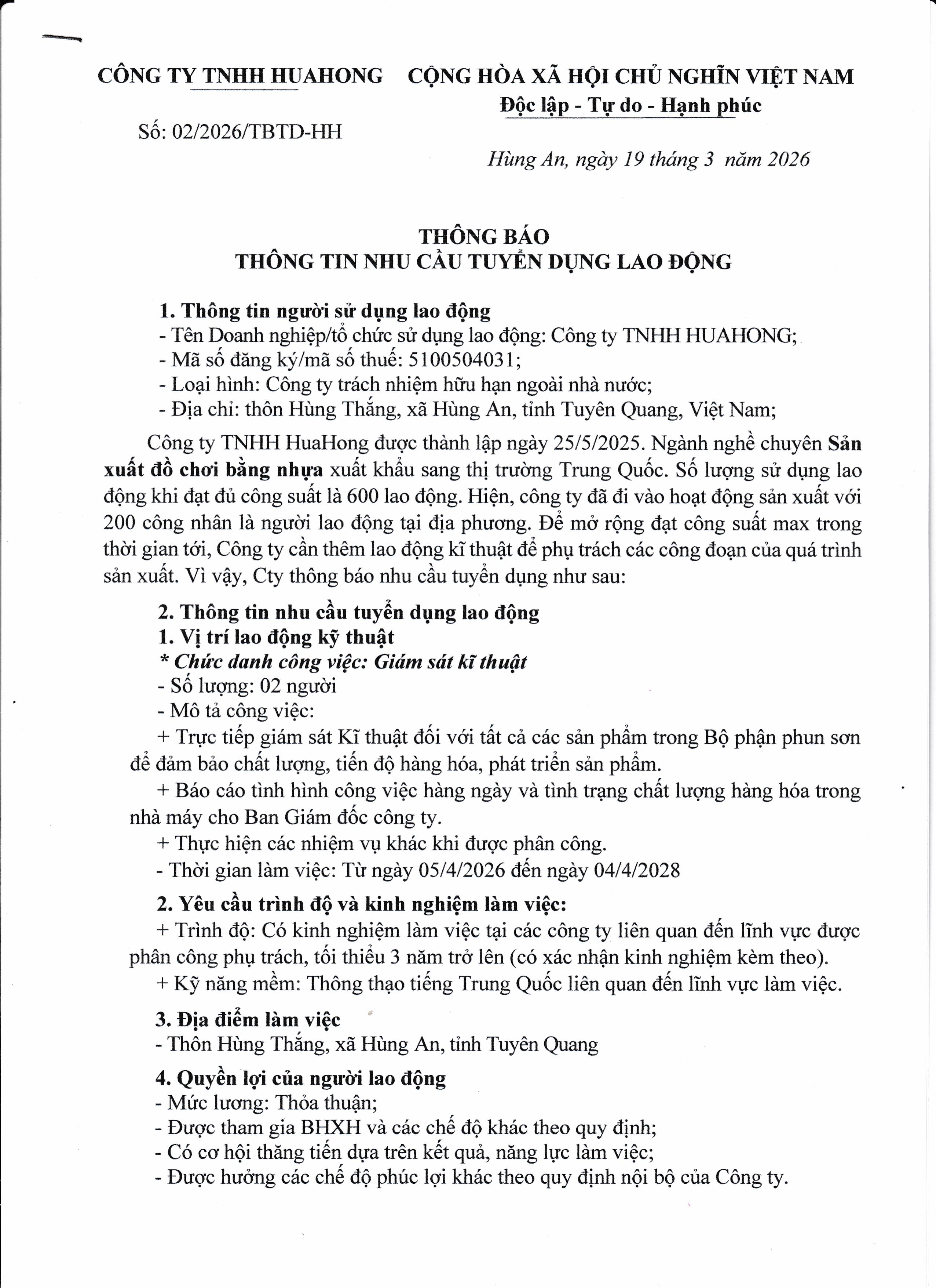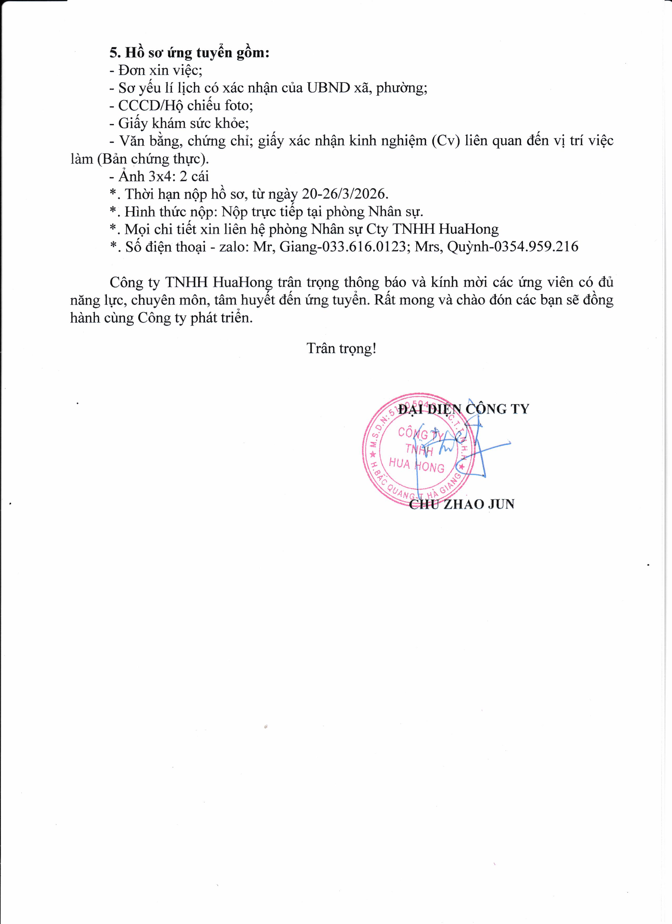 Ứng viên có nhu cầu vui lòng liên hệ: Trung tâm chính tại Tổ dân phố Hưng Thành 3, phường An Tường, tỉnh Tuyên Quang, số điện thoại 0968.537.388. Trụ sở 2 tại số nhà 224, tổ 13, phường Hà Giang 1, tỉnh Tuyên Quang, số điện thoại 02193.829.688. Văn phòng Chiêm Hóa tại thôn Vĩnh Khanh, xã Chiêm Hóa, tỉnh Tuyên Quang, số điện thoại 02073.851.699. Văn phòng Sơn Dương tại thôn Quyết Thắng, xã Sơn Dương, tỉnh Tuyên Quang, số điện thoại 02073.835.688. Văn phòng Bắc Quang tại thôn 9, xã Bắc Quang, tỉnh Tuyên Quang, số điện thoại 02193.822.386. Văn phòng Yên Minh tại tổ 1, xã Yên Minh, tỉnh Tuyên Quang, số điện thoại 02193.860.385
