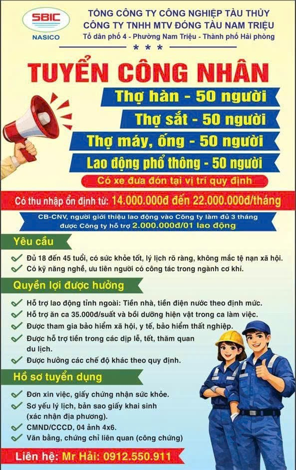 TỔNG CÔNG TY CÔNG NGHIỆP TÀU THỦY THÔNG BÁO TUYỂN DỤNG