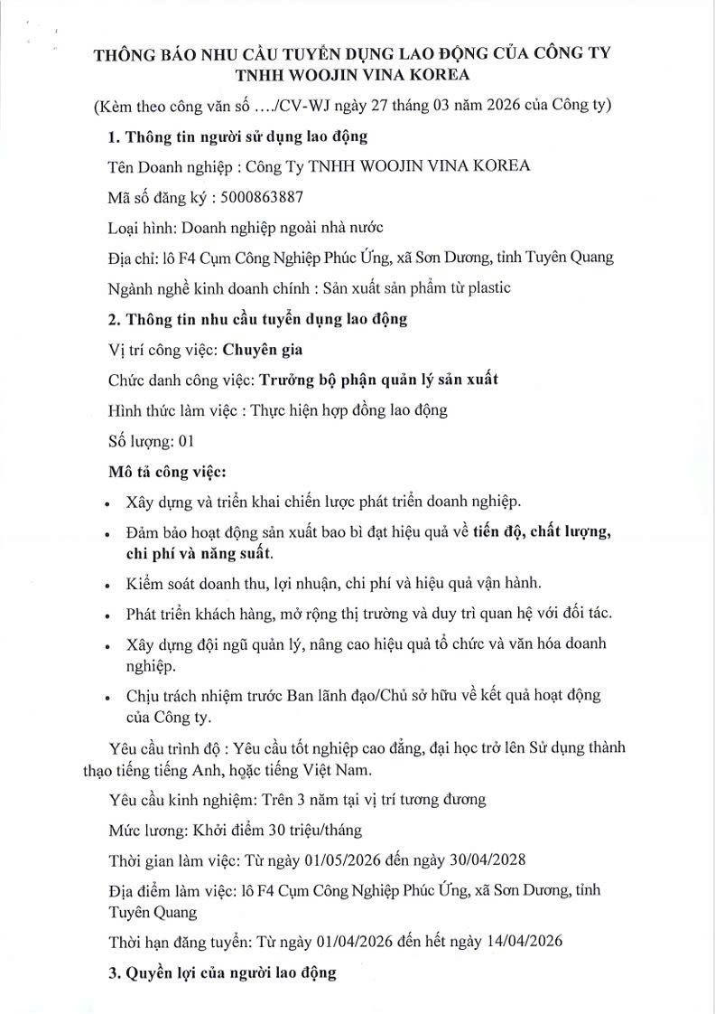 Ứng viên có nhu cầu vui lòng liên hệ: Trung tâm chính tại Tổ dân phố Hưng Thành 3, phường An Tường, tỉnh Tuyên Quang, số điện thoại 02073.818.239. Trụ sở 2 tại số nhà 224, tổ 13, phường Hà Giang 1, tỉnh Tuyên Quang, số điện thoại 02193.829.688. Văn phòng Chiêm Hóa tại thôn Vĩnh Khanh, xã Chiêm Hóa, tỉnh Tuyên Quang, số điện thoại 02073.851.699. Văn phòng Sơn Dương tại thôn Quyết Thắng, xã Sơn Dương, tỉnh Tuyên Quang, số điện thoại 02073.835.688. Văn phòng Bắc Quang tại thôn 9, xã Bắc Quang, tỉnh Tuyên Quang, số điện thoại 02193.822.386. Văn phòng Yên Minh tại tổ 1, xã Yên Minh, tỉnh Tuyên Quang, số điện thoại 02193.860.385
