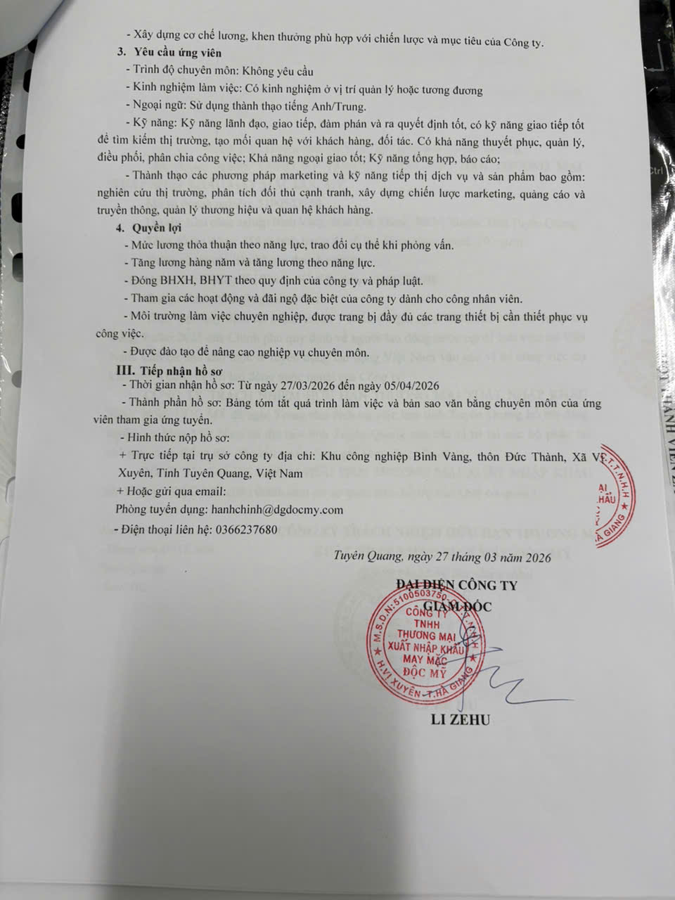 Ứng viên có nhu cầu vui lòng liên hệ: Trung tâm chính tại Tổ dân phố Hưng Thành 3, phường An Tường, tỉnh Tuyên Quang, số điện thoại 02073.818.239. Trụ sở 2 tại số nhà 224, tổ 13, phường Hà Giang 1, tỉnh Tuyên Quang, số điện thoại 02193.829.688. Văn phòng Chiêm Hóa tại thôn Vĩnh Khanh, xã Chiêm Hóa, tỉnh Tuyên Quang, số điện thoại 02073.851.699. Văn phòng Sơn Dương tại thôn Quyết Thắng, xã Sơn Dương, tỉnh Tuyên Quang, số điện thoại 02073.835.688. Văn phòng Bắc Quang tại thôn 9, xã Bắc Quang, tỉnh Tuyên Quang, số điện thoại 02193.822.386. Văn phòng Yên Minh tại tổ 1, xã Yên Minh, tỉnh Tuyên Quang, số điện thoại 02193.860.385