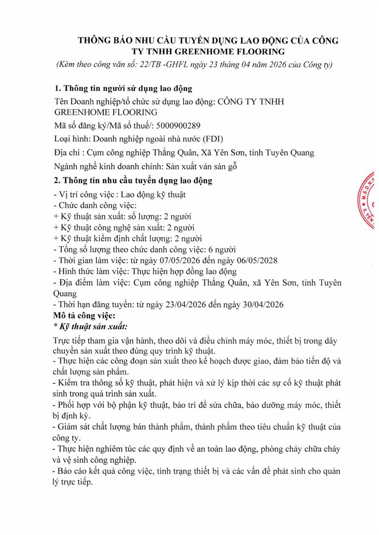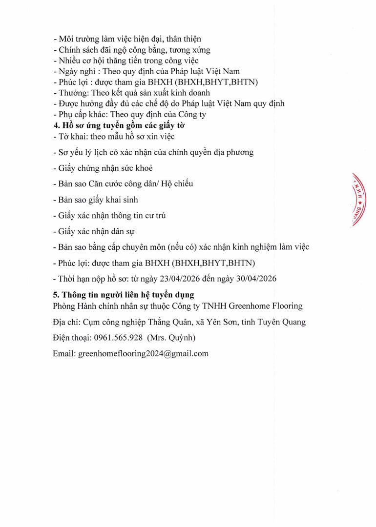Ứng viên có nhu cầu vui lòng liên hệ: Trung tâm chính tại Tổ dân phố Hưng Thành 3, phường An Tường, tỉnh Tuyên Quang, số điện thoại 02073.818.239. Trụ sở 2 tại số nhà 224, tổ 13, phường Hà Giang 1, tỉnh Tuyên Quang, số điện thoại 02193.829.688. Văn phòng Chiêm Hóa tại thôn Vĩnh Khanh, xã Chiêm Hóa, tỉnh Tuyên Quang, số điện thoại 02073.851.699. Văn phòng Sơn Dương tại thôn Quyết Thắng, xã Sơn Dương, tỉnh Tuyên Quang, số điện thoại 02073.835.688. Văn phòng Bắc Quang tại thôn 9, xã Bắc Quang, tỉnh Tuyên Quang, số điện thoại 02193.822.386. Văn phòng Yên Minh tại tổ 1, xã Yên Minh, tỉnh Tuyên Quang, số điện thoại 02193.860.385